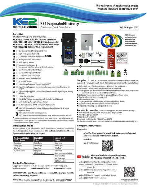 Condensed quick start q.3.67 download. Ke2 temp, ke2 low temp ke2 adaptive control. Web page 1 q.1.3 july 2015 ke2 evaporatorefficiency quick start guide this reference should remain on site with the installed ke2 evaporator efficiency controller.