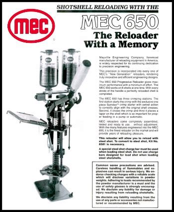Web i purchased a 45 year old mec super 600 reloading press, rebuilt it and got it working. Especially like them for reloading the small gauge shells. The 650 literature pack includes.