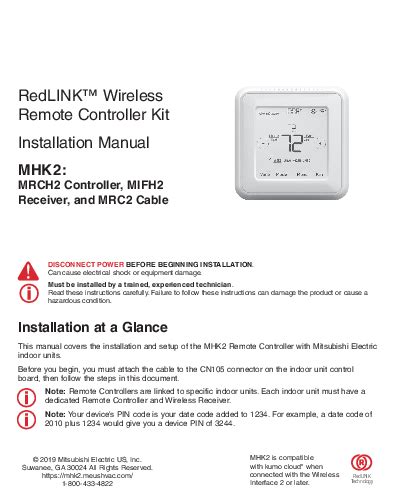 Web controller mitsubishi electric mhk2 installation manual 13 pages. • wireless receiver and cable • remote controller disconnect power before beginning. Before you begin, you must attach the cable to the.